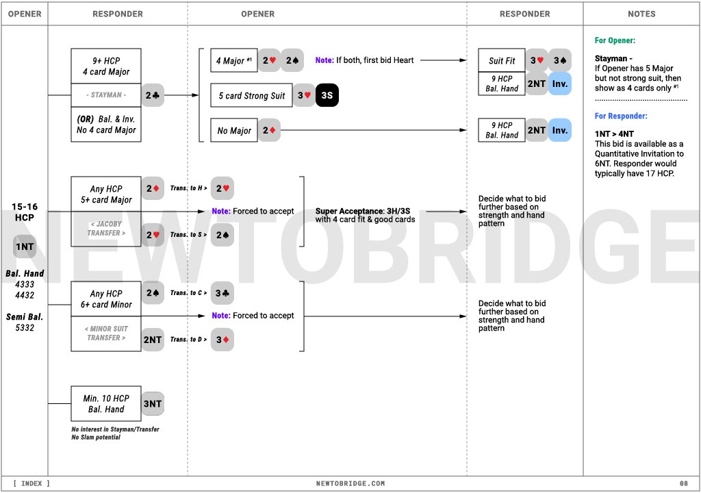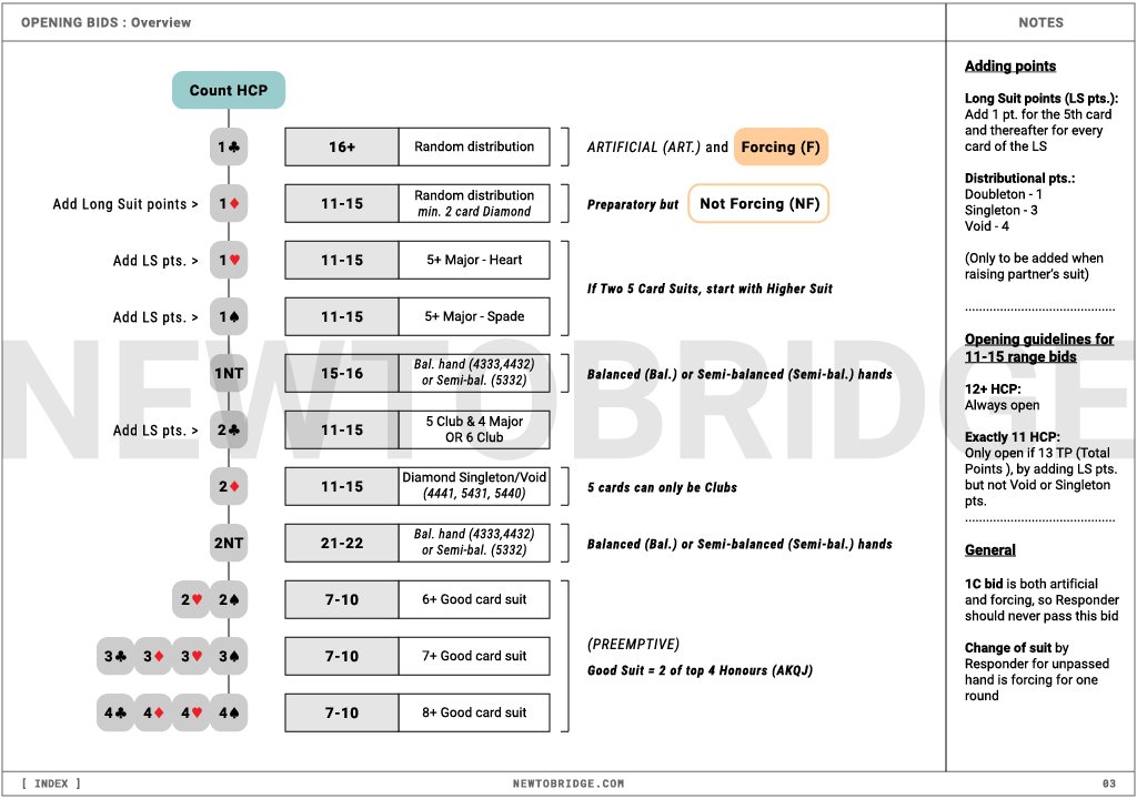 Our special flow-chart format of notes are designed to help you understand and learn the bidding system in a simple and visually engaging manner. Choose either the Web or Print Version, based on the medium you feel most comfortable using.
